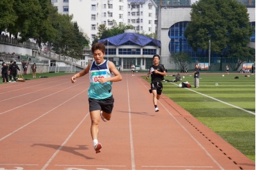 发令枪响,竞技组和教工组的运动员们奋勇争先,朝着终点的方向努力奔跑。各学院体验组也紧随其后,旗手们用力挥舞着旗帜展示着他们蓬勃的朝气。