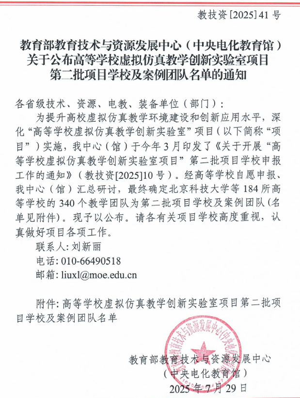 我院人工智能辅助运动技能学习与控制虚拟仿真实验室入选教育部教育技术与资源发展中心《高等学校虚拟仿真教学创新实验室项目第二批项目学校及案例团队名单》