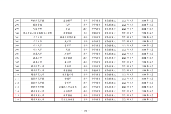 体育教育专业成功通过教育部师范类专业第二级认证