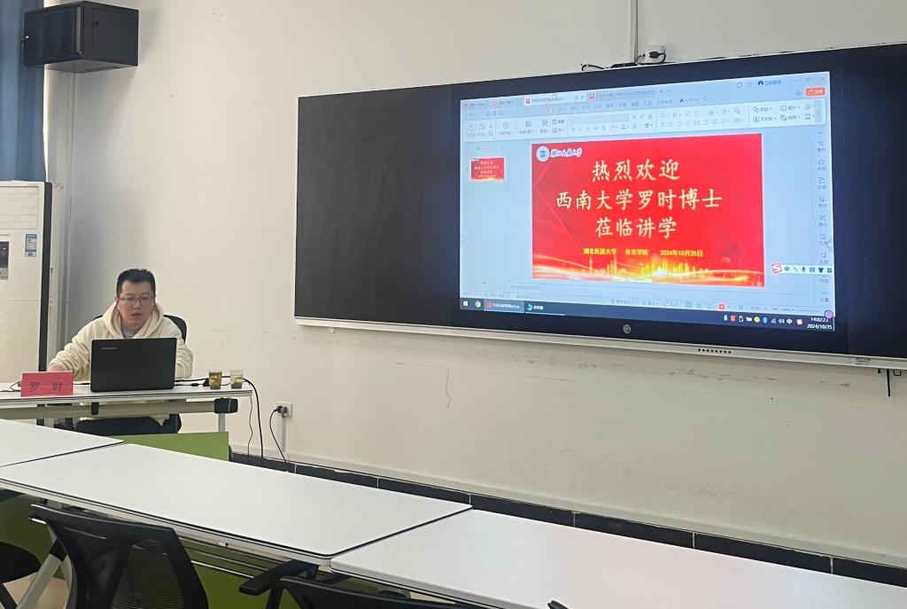 2024年10月25日,星期五14:00,一场以“国家级课题申报与SSCI论文发表经验分享”为主题的学术盛宴在体育学院德智楼9A103会议室成功举办。本次讲座由365电子娱乐官方网站体育学院主办,旨在提升师生在高级别科研项目申报及国际学术论文发表方面的能力和水平。讲座特邀教育学博士、国家二级心理咨询师、教育部学位与研究生教育评估监测专家库专家、西南大学体育学院副教授,罗时博士作为主讲嘉宾,由365电子娱乐官方网站体育学院张辉博士担任主持人。