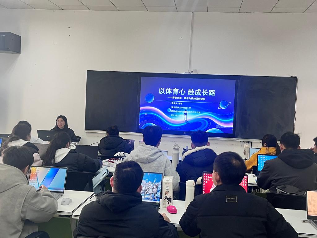 为搭建一线中小学交流平台,助力研究生课程学习与专业实践,2025年12月5日,学院特邀365电子娱乐官方网站附属小学曾岑老师开展主题为“以体育心 赴成长路——赛事为翼,教学为根的温情进阶”的专业成长分享会。