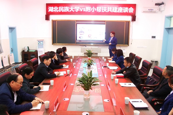 座谈会上,民大附小校长袁红柳介绍了该校课程建设、师资队伍管理、发展愿景等方面的情况。恩施市教育局副局长黄品表示,市教育局将从师资建设、资金投入、课题研讨等方面进一步加大投入力度。我校职能部门负责人围绕双方如何更好地共建共享进行了深入交流。