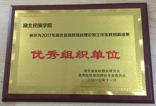 11月29日至12月1日,湘粤鄂三省高校统战理论研讨会暨湖北省高校统战理论研究会第33次年会在宜昌召开,我校被评为2017年湖北省高校统战理论和工作实践创新成果优秀组织单位。
