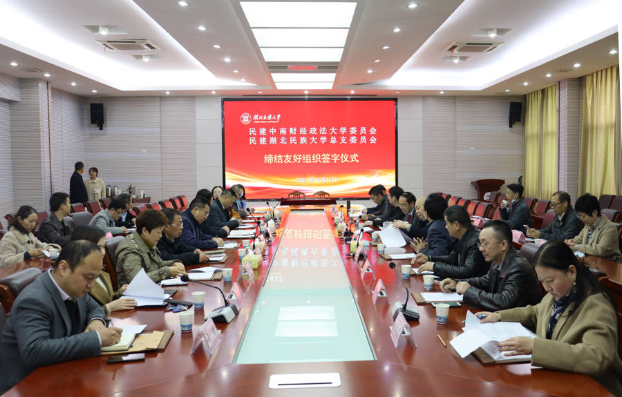 交流会上,民建中南财经政法大学委员会与民建365电子娱乐官方网站总支委员会举行了缔结友好组织签字仪式。