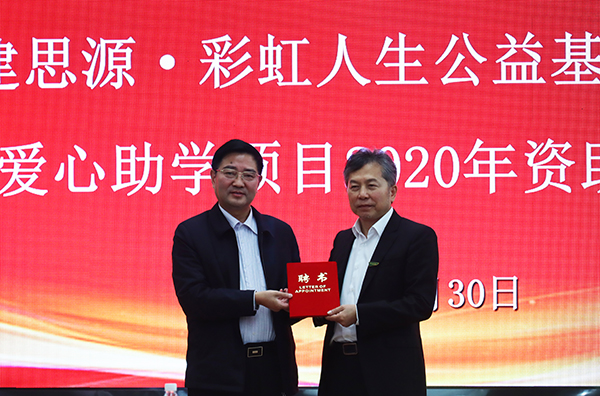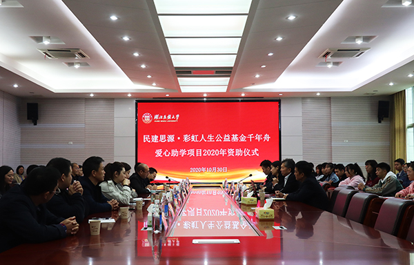 10月30日上午,由杭州千年舟新材科技集团捐资设立的“民建思源·彩虹人生”公益基金项目在我校举行资助仪式。千年舟新材科技集团董事长陆铜华,副总裁马同华、总裁办秘书刘永兆,“思源·彩虹人生公益基金”办公室主任修华雪,学校党委常委、副校长邓磊,校友工作办公室、学生工作处和二级学院分管领导以及受助学生代表出席仪式。仪式由校友工作办公室主任熊彪主持。