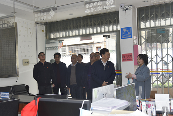 党委书记吴建清(右二)查看社区党员群众服务中心