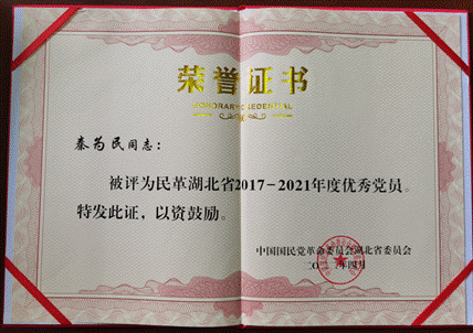 民革秦为民荣获2017——2021年度民革湖北省委优秀党员