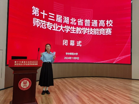 本网讯(通讯员 向安琪)2024年11月9日,第十三届湖北省普通高校师范专业大学生教学技能竞赛总决赛在华中师范大学圆满落幕,我院汉语言文学专业向安琪同学在陈姗等老师指导下喜获初中语文组二等奖!向安琪同学在颁奖现场湖北省师范专业大学生教学技能竞赛由湖北省教育厅主办,华中师范大学承办,旨...