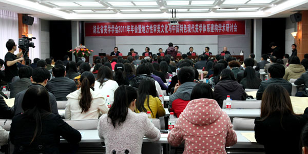 本网讯(记者 周璐)11月26日上午,由我院承办的湖北省美学学会2011年年会暨地方性审美文化与中国特色现代美学体系构建学术研讨会在我校科技学院三楼多功能会议厅隆重举行。湖北省美学学会秘书长范明华,会长彭富春,副会长彭修银、聂运伟,恩施自治州人大常委会副主任罗贤美,我校纪委书记刘芳震、文学与传媒学院院长杨光宗及来自各大高校的学术代表出席了此次会议。会议由范明华主持。