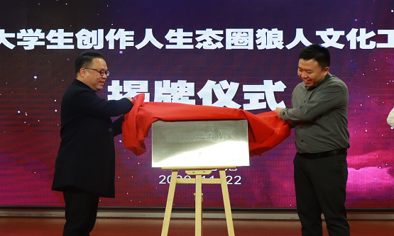 本网讯(记者 姜文佳 见习记者 聂夏茸)11月22日,文学与传媒学院与重庆小二郎文化传媒有限公司共建的校企协同创新平台——狼人文化工作坊在我院演播厅正式揭牌。