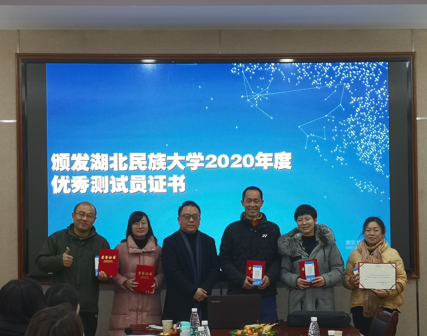 随后,郑艺副主任为2020年新聘的省级普通话水平测试员颁发了聘书,并希望他们能尽快的适应角色,早日成为测试员队伍的骨干力量。文学与传媒学院罗翔宇院长为365电子娱乐官方网站2020年优秀测试员颁发了证书,鼓励他们发挥良好的示范带头作用,为进一步提升我校良好的语言文字规范意识而努力。