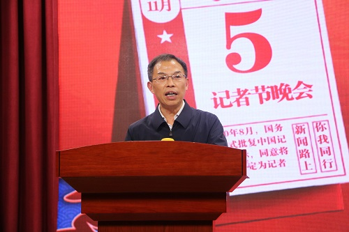 杨光宗在致辞中向新闻工作者和新闻学子致以节日的诚挚祝贺,从教育方式、新闻平台、教育成就三个方面回顾我院新闻传播学的发展,并对打造我校有文化、有底蕴、有责任感的新闻宣传队伍寄予殷切期望,勉励我校新闻学子胸怀祖国和人民,发扬马克思主义新闻观,用笔头抒写伟大,努力奋进在时代前列。