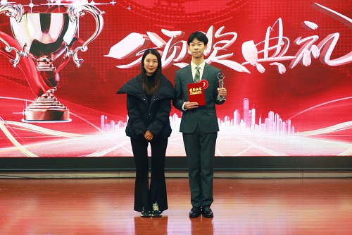 林静老师给一等奖选手颁奖(见习记者 范艺/摄)