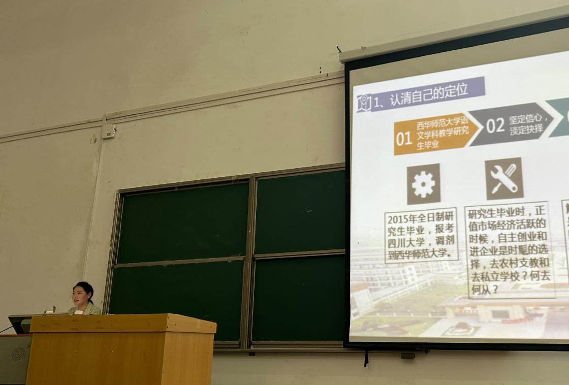 继伍老师讲座之后,张娣老师以《青年教师的成长之路与教学思考》为题,向学生分享了她作为一位青年教师的成长经验。