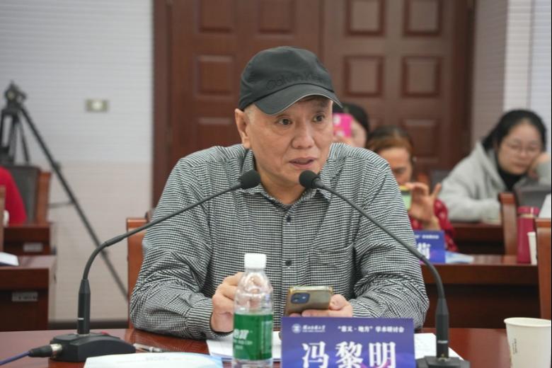 文学与传媒学院特聘教授冯黎明致辞,他分享了顾彩《容美游记》的故事,分析其中蕴含文学叙事的乌托邦叙事,以及明清之交儒学文人的身份焦虑和中原世界的特殊的空间想象。他认为,此次研讨会将直面人类的根本问题,期望通过“意义•地方”学术研讨会使恩施成为与会人员共同有意义的地方。