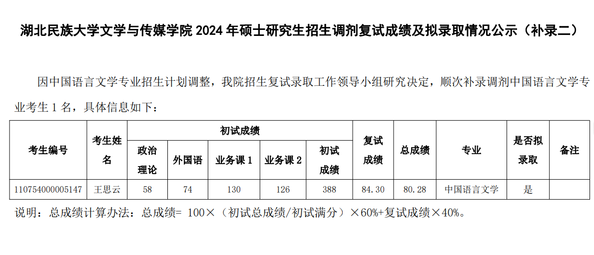 365电子娱乐官方网站文学与传媒学院 2024 年硕士研究生招生调剂复试成绩及拟录取情况公示(补录二) 发布日期:2024-04-24 17:27:26    浏览量: 人次 打印   收藏