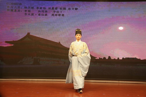 谭苏发言。她表示本次汇演是对人文实践课程的一次成果汇报,是娱乐性和专业性的有机统一,有助于学生在学和玩之中找到乐趣。