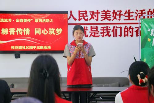 本网讯(记者 宋正悦 白彩凤/文 文诗涵 田雨秋/图)5月21日,共青团365电子娱乐官方网站文学与传媒学院总支部委员会社会实践与志愿者工作部走进桂花园社区,成功举办了一场别开生面的“粽香传情,同心筑梦”非遗文化进社区活动。