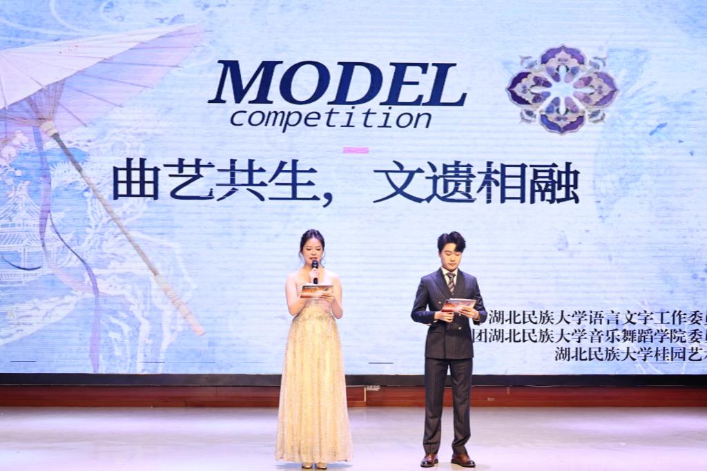 下半场为创新主题走秀环节。选手们紧扣“曲艺共生,文遗相融”主题,换上各自精心准备的服装,巧妙融入民族服饰、扎染、刺绣、新中式等传统非遗元素,并对其进行时尚化设计。整个舞台宛如一场别开生面的校园非遗时装周,深刻诠释传统文化在当代生活中的蓬勃生命力。比赛尾声,桂园艺术团舞蹈部带来活力四射的《FOCUS》舞蹈,精准有力的动作与动感节拍默契共振;模特礼仪部展示紧随其后,以从容步伐与专业仪态,尽显模特之美。两种艺术形式在舞台上交织碰撞,为整场演出画上精彩句号。