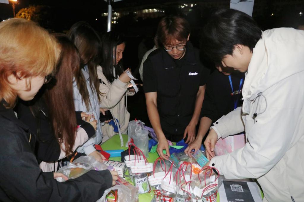 本次活动设置两人三足折返跑、站点小游戏、投壶兑奖等多个环节,将情绪释放与团队协作深度结合。夜幕降临,活动现场灯火温馨、热闹非凡,配合轻快的背景音乐,各小组步伐协同、默契配合,奔跑、游戏、互动的身影遍布场地,欢笑声、加油声此起彼伏,交织成一曲充满活力的青春乐章。