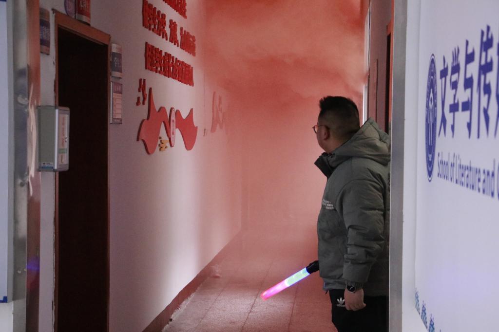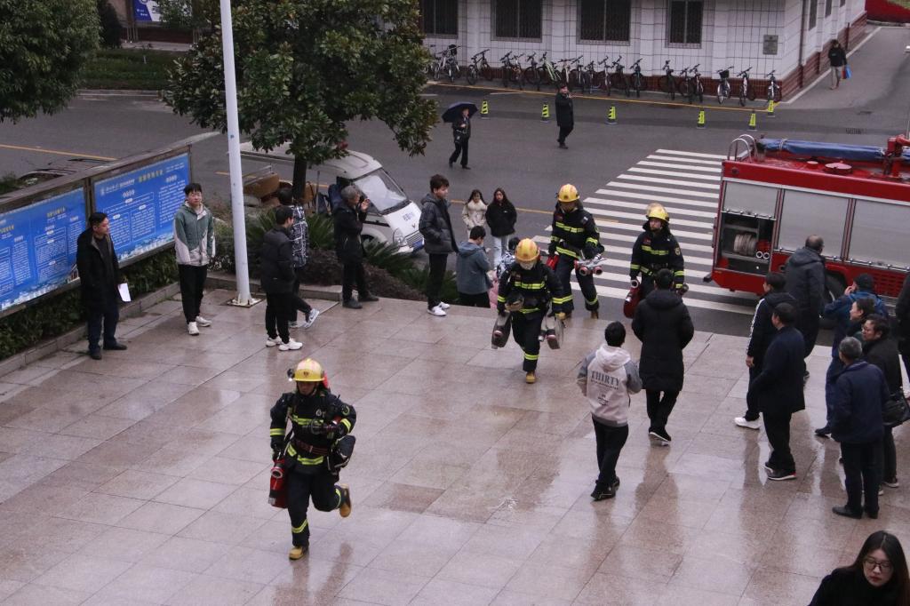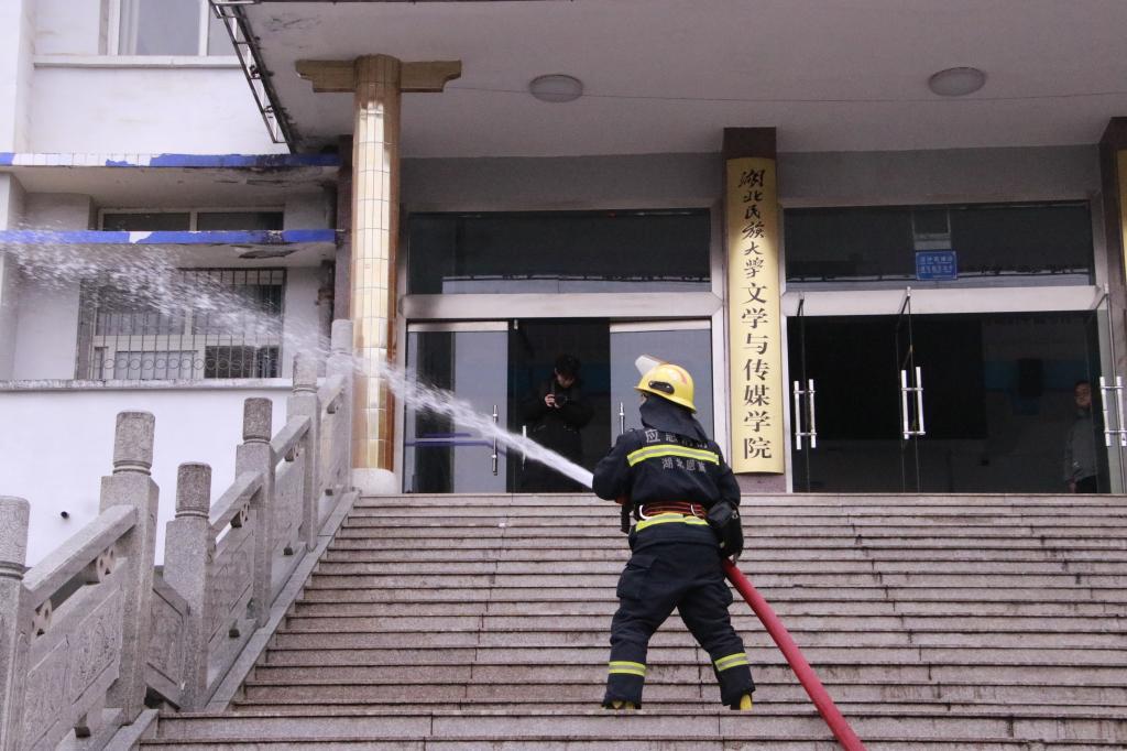 文:彭思懿  图:杨轶 郑帅康12月12日下午,文学与传媒学院与学校保卫工作部联合组织消防演练。本次消防演练于文翰楼开展,分为模拟逃生、灭火操作演练、水带连接讲解三个环节。张刚书记、张宏树院长组织此次活动,全体教职工和部分学生参加。