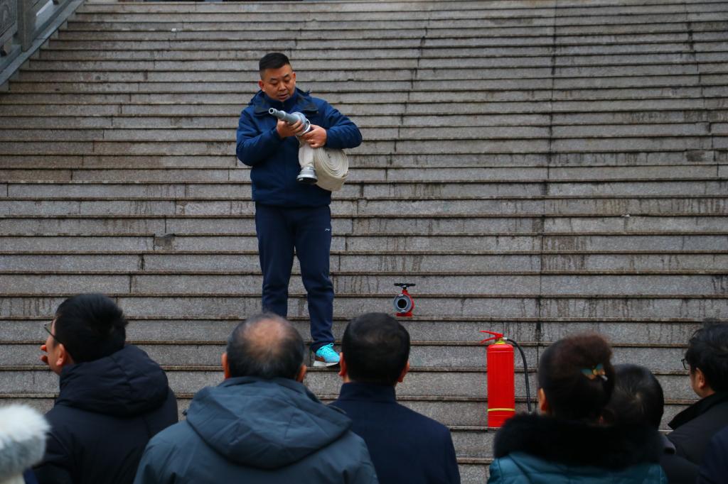 演练结束,学校保卫工作部吕就干粉灭火器的使用方法、初期火灾扑救方法及柴堆灭火注意事项给学院师生进行了详细讲解。向全体师生演示了用干粉灭火器及消防水带灭火的方法