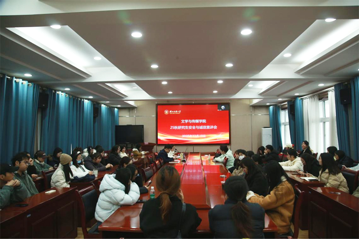 本网讯(记者 李彦汶 张烨)为深入贯彻落实研究生处工作部署,进一步强化研究生安全防范意识和科研诚信教育,切实筑牢校园安全防线,营造风清气正的学术与考试诚信氛围,12月19日上午,文学与传媒学院召开研究生安全与诚信教育宣讲会。学院学科建设科教师及全体研究生参加活动。彭景怡老师发言会上...