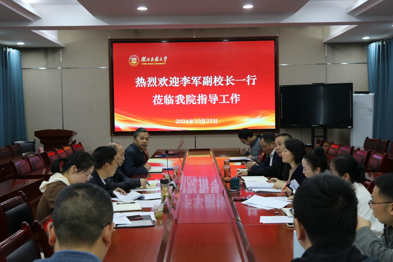 本网讯(通讯员 张慧 摄影 吴博夫)10月23日上午,学校党委常委、副校长李军来到我院,就专业调整和人才培养展开调研,教务处务处副处长朱廷辉、国际交流合作处副处长段先宇等陪同调研。院长张宏树、书记张刚、副院长江佳慧及专业负责人参加座调研座谈会。调研会上,李军副校长悉心听取了我院针对《...