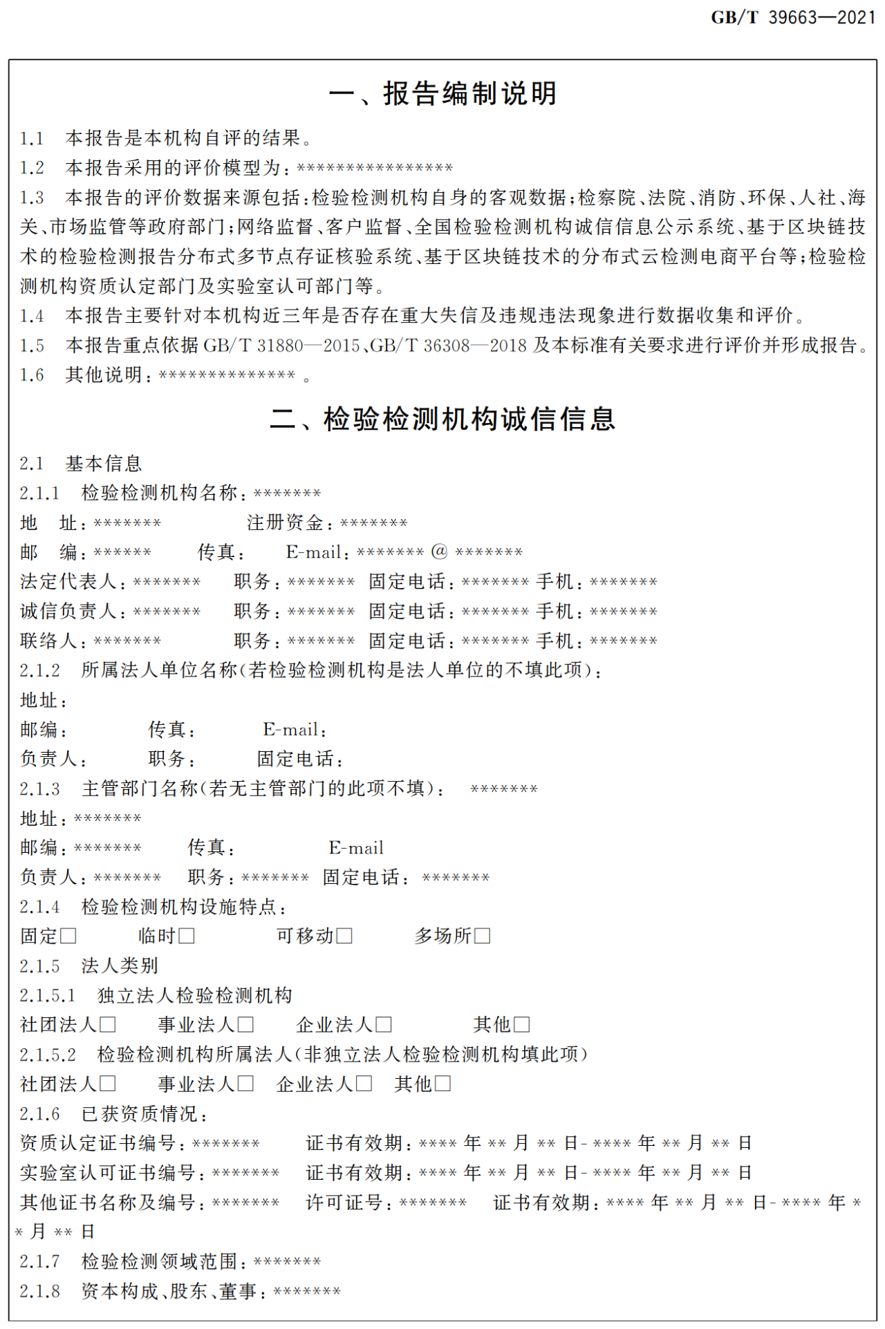 GB/T 39663-2021《检验检测机构诚信报告编制规范》于2021年4月30日经国家市场监督管理总局(国家标准化管理委员会)批准发布,自2021年11月1日起实施。