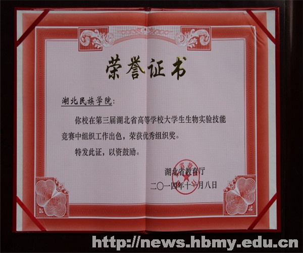 校园网(通讯员张明天/文周毅锋/图)湖北省教育厅近日发文,公布了第三届湖北省高等学校大学生生物技能竞赛获奖名单。由我校9名学生组成的代表队,在我校生物科学与技术院老师周毅锋、田国政、张建新、傅悦、高山、武芸的悉心指导下,一举夺得植物学一等奖,微生物学一等奖,动物学二等奖,生物化学二等奖,微生物学三等奖,动物学三等奖,我校连续两年获得优秀组织奖。