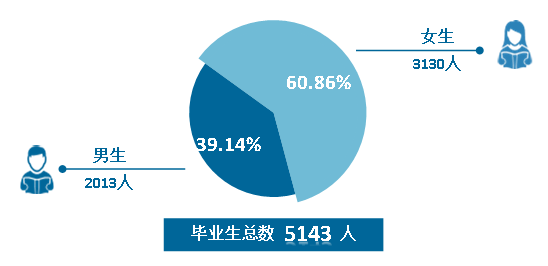 学校女生规模相对更高。从性别结构来看,男生2013人,女生3130人,男生占比(39.14%)低于女生(60.86%),男女比例为0.64:1。