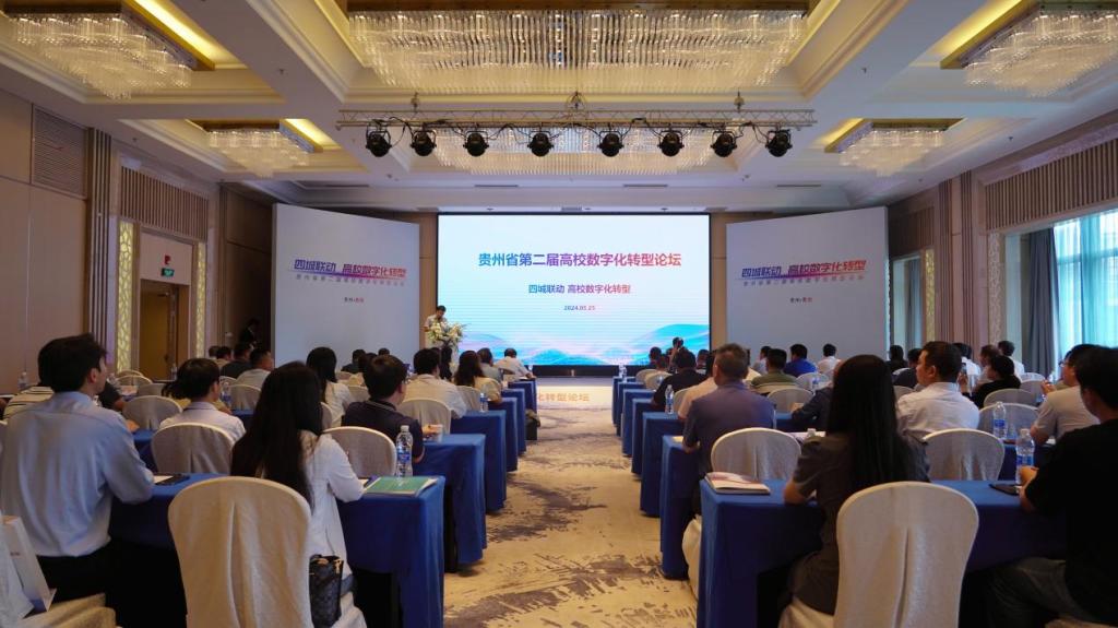 5月25日,贵州省第二届高校数字化转型论坛在贵阳万丽酒店顺利举行,我校受邀参加论坛。此次论坛由贵安新区管理委员会指导,贵州省计算机学会主办,并得到多方单位的大力支持。论坛聚焦教育数字化转型,旨在推进产业、教育、科技、人才的“四位一体”协同融合发展,为高等教育内涵式高质量发展注入新动力。贵阳市大数据局副局长徐先文出席会议,高校数字校园相关领域专家、管理部门领导、数字校园相关企业负责人及高级顾问参加会议。