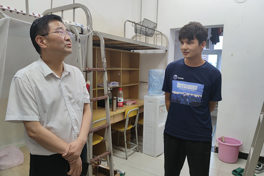 邓磊在走访中强调,学校相关部门要关心关爱假期留校学生的生活起居问题,为同学们营造良好的学习生活环境,同时要加强宿舍卫生督促与安全隐患排查,引导学生文明素养的习得养成。