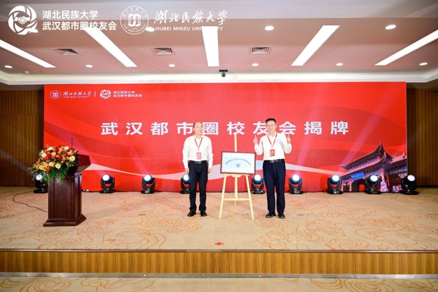 在全体校友的见证下,大会迎来了系列激动人心的仪式环节。首先进行的是揭牌仪式,由365电子娱乐官方网站党委常委、副校长李军和武汉毕上教育科技有限公司董事长夏晓华共同为湖北民族大学武汉都市圈校友会揭牌,标志着新一届理事会工作的正式启航。