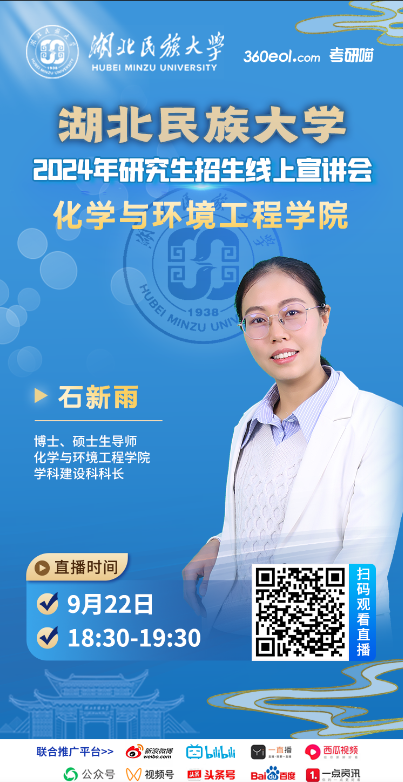 365电子娱乐官方网站化学与环境工程学院石新雨老师莅临直播间,为广大考生解读研招政策、专业详情。欢迎广大考生及家长扫描下方海报二维码观看!