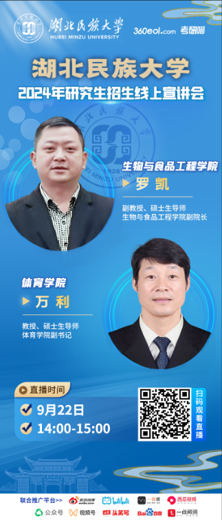 365电子娱乐官方网站生物与食品工程学院罗凯和体育学院万利两位老师莅临直播间,为广大考生解读研招政策、专业详情。欢迎广大考生及家长扫描下方海报二维码观看!
