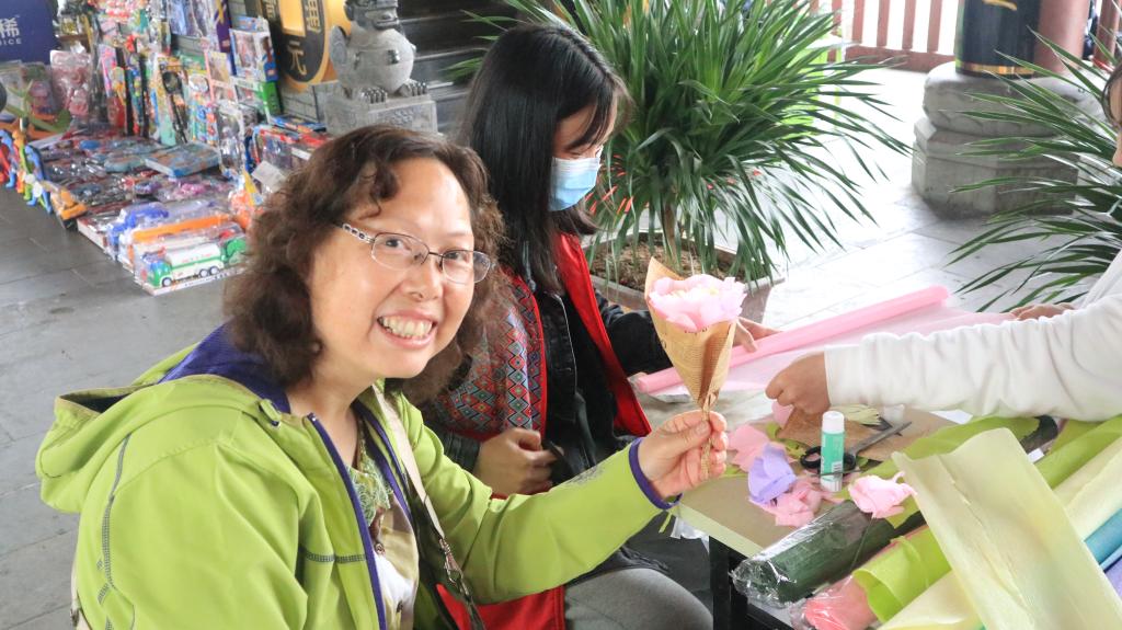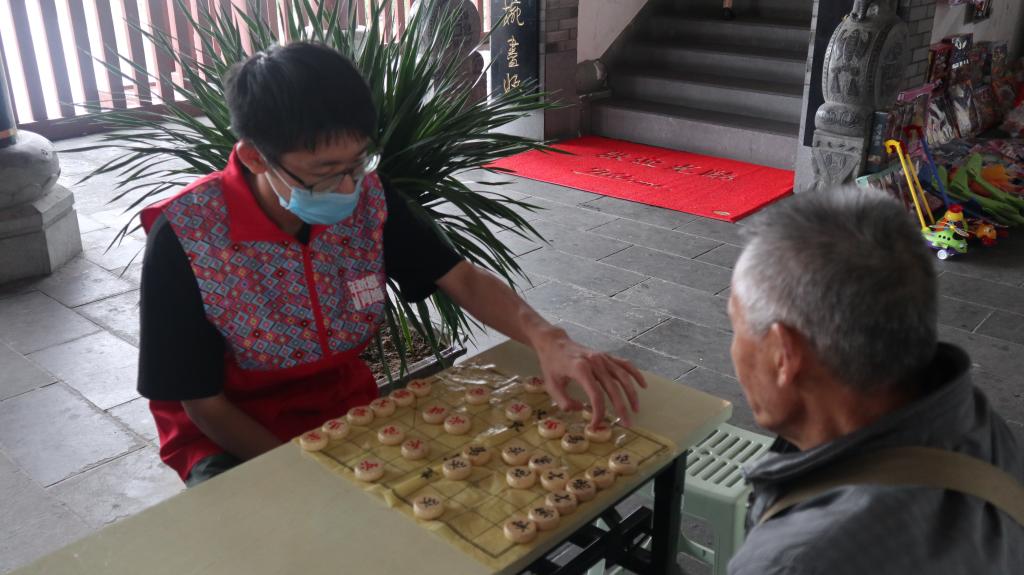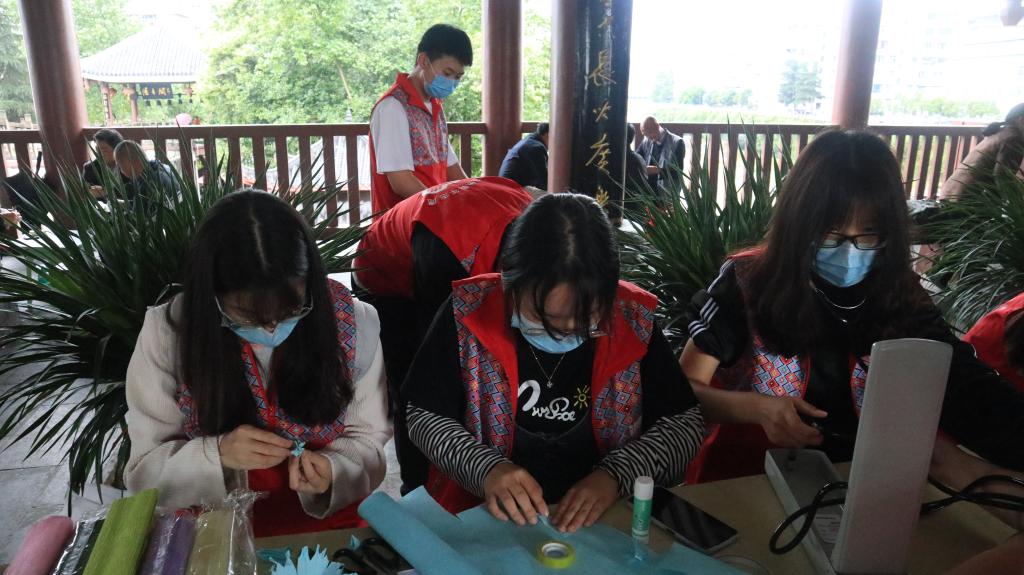 进入社区后,志愿者们分成三组,一组志愿者主动问候过路的老人,给老人们测血压,询问老人的身体状况和精神状态,并教导老人们用良好的饮食习惯和体育运动来调控血压,保持身体的健康;一组志愿者陪老人下象棋,陶冶情操,愉悦身心;另一组志愿者和老人一同制作纸花,卡纸在手中翻折变化,老人和志愿者们的心也靠的越来越近,在相互的了解关心中,一朵朵精美的花跃然纸上。