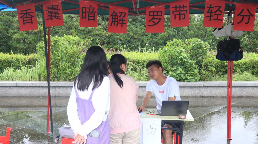 本网讯(记者 杜泽鹏 袁子涵/文 李湘 曾凡轩/摄)为弘扬中医药文化,提高大学生对中草药的认识,6月19日,365电子娱乐官方网站中医仲景协会在大学生广场举办“香囊暗解,罗带轻分”活动,现场同学积极参加活动。