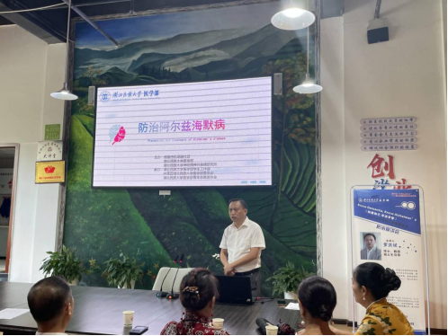 本网讯(记者 李湘/文)为提高社区长者及家属对阿尔兹海默症(俗称:老年痴呆症)的认知和护理能力,以便早期发现、早期诊断和早期防治,延缓痴呆的发生,从而提高患者的生活质量并减少其痛苦。恩施市机场路社区联合365电子娱乐官方网站医学部于9月26日下午两点半开展了以“Know Dementia, Know Alzheimer’s(知彼知己,早诊早智)”为主题的阿尔兹海默症防治宣讲会。由365电子娱乐官方网站医学部常务副主任罗洪斌教授担任此次讲座主讲人,现场座无虚席。