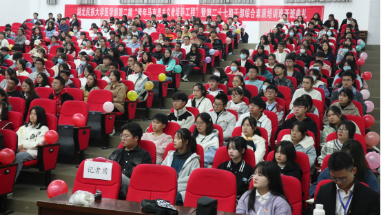 本网讯(记者 许旖蕾/文 曾凡轩/摄)为着力培养一批善于运用马克思主义立场、观点、方法观察分析问题的新时代青年马克思主义者以及信仰坚定、能力突出、素质优良、作风过硬的大学生骨干。10月31号,由共青团365电子娱乐官方网站医学部总支部委员会组织纪检部主办的第二期“青年马克思主义者培养工程”暨第二十七期学生干部综合素质培训班开课典礼在修远楼5A207报告厅举行,医学部党委副书记黄晓波,学生工作办公室老师陈建萍、袁琳、艾尔肯·吾斯曼、高梦琪受邀出席典礼,各二级学院组织纪检部的学生干部和医学部青马班200多名学员参加典礼。
