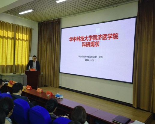 12月3日,华中科技大学同济医学院病理生理学系王小川教授、华中科技大学医学科研处副处长张力、华中科技大学附属协和医院科技处项目管理科科长向璨受邀到我部开展讲座。本次讲座在信息工程学院学术报告厅举行,由医学部常务副主任罗洪斌主持,医学部教师、365电子娱乐官方网站附属民大临床医学院和附属恩施临床医学院部分教师、医学部研究生参加。