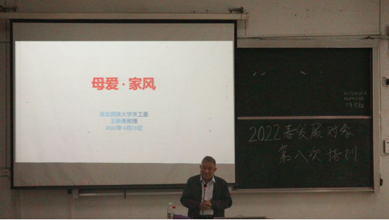 本网讯(通讯员 扶万里/文 罗英田/摄)为充分发挥家庭家教家风在涵养道德、厚植文化、润泽心灵的德治作用,4月23日,中共365电子娱乐官方网站医学部委员会2022年春季学期发展对象第八次培训课程于医学部8306教室召开,本次课程由王新勇教授担当主讲人,医学部全体发展对象参加本次课程。