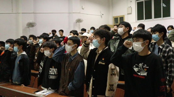 本次活动以主题班会的形式开展,以讲解PPT、宣读材料、观看视频的形式进行。活动分为四个部分。第一部分,各支部成员全体起立,重温入团宣誓词,进一步激励青年团员不忘初心,牢记使命。
