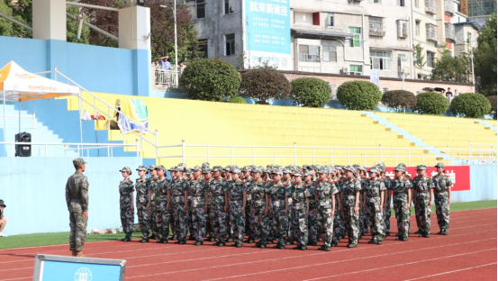 大会最后,武警官兵与学校领导完成军训团团旗交接仪式,我校2022级学生军训圆满结束。