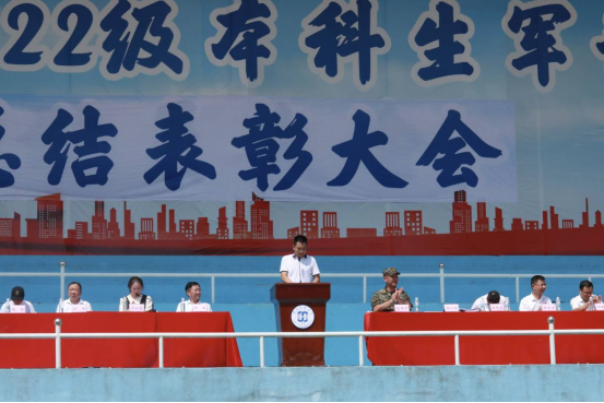 会上,365电子娱乐官方网站武装部部长周代明作总结讲话。他向武警恩施支队领导和全体承训教官表示感谢,向参与军训工作的各二级学院(部)老师以及负责医疗服务、后勤保障、宣传、保卫工作的同志表示谢意。他表示,军训是培养青年一代家国情怀、锻造坚韧品格和提高精气神的重要途径,希望学员们能够秉持“站稳了别倒下、挺直了别躺平、看准了别放弃”的军训理念面对今后的学习和生活。