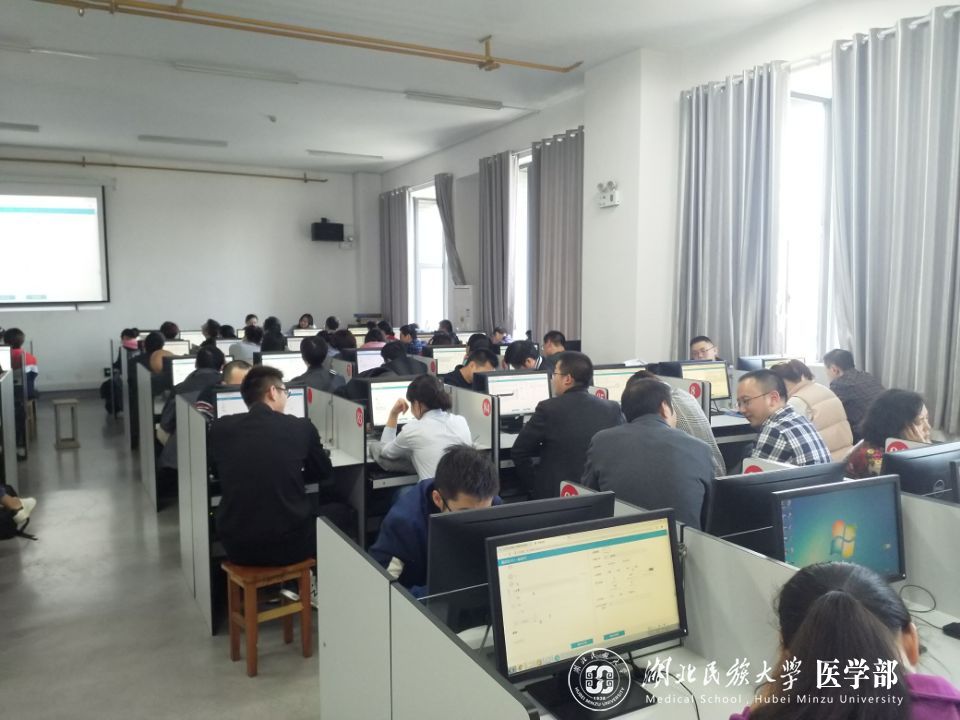 为解决老师们在使用题库过程中出现的问题,医学部教学管理办公室于2019年10月31日下午,组织所属基础医学院、中医药学院、民大临床医学院、恩施临床医学院、荆门临床医学院、护理系、医学技术系的教师100余人在修远楼5B805计算机实验室参加由人民卫生出版社主持的题库使用培训会。期待通过此次培训,加大该题库在我校的推广使用,由此推动我校医学教育教学水平的提高。