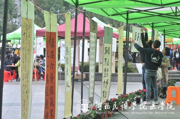 本网讯(记者 李晓芳 王蓉/文 熊慧雯/摄 )《红楼梦》为中华传统文化集大成者,细读红楼,菊品茗,吟诗作对,挥毫泼墨,无不儒雅风流,谓人生一大乐事。11月18日,我校学生社团联合会举办的红楼文艺会展于大学生广场圆满落幕,六个学生社团参与其中。书画社和养生与健康协会作为我院优秀社团参加活动,现场引来无数师生驻足观看。