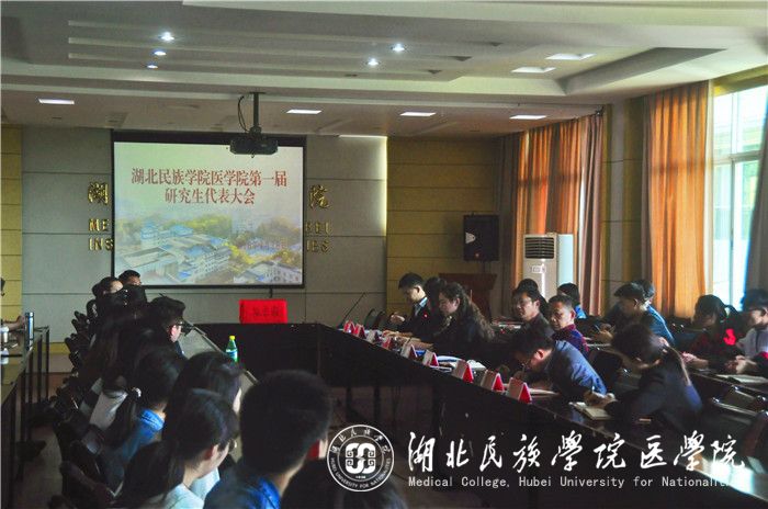 会议在雄壮的国歌声中拉开帷幕。大会第二项,袁德培院长宣读我院研究生会成立文件。大会第三项,田春漫科长宣读《湖北民族学院医学院研究生会章程》,在章程中,田科长详细介绍章程的每一章内容,向研究生代表们传达了医学院研究生会的规章制度。大会第四项,选举产生第一届湖北民族学院医学院研究生委员会。张书记宣读本次大会的候选人名单,接着由在场的37名研究生代表投票选举。最终,凌志峰、鲜慈英等10名同学被推选为医学院第一届研究生会委员,凌志峰被推选为主席。