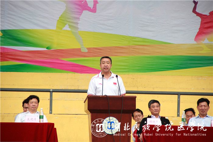 接下来,汪兴平致闭幕词。他首先代表学校党委、行政和运动会组委会对取得优异成绩的运动员个人及集体致以热烈的祝贺,对为运动会顺利进行付出辛勤努力的全体工作人员、裁判员表示衷心的感谢。他指出,本次运动会充分体现了“全民健身,体育育人”的理念,全体运动员发扬了“更快、更高、更强”的奥林匹克精神,恪守“友谊第一,比赛第二”的体育道德风尚;裁判员兢兢业业、一丝不苟,确保了比赛的公平公正;工作人员精心准备,认真组织,确保了运动会的成功举行。最后,汪兴平隆重宣布湖北民族学院2018年春季运动会胜利闭幕。大会在校歌《壮志凌云》中落下帷幕。