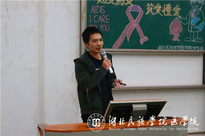 本网讯(记者 苗佩佩 通讯员 郭恩惠/文 吕丰旭 易璐/摄)为加深同学们对艾滋病的认识,增强防艾意识及社会责任感,12月4日,由我院学生会心理健康部和宣传与语言文字工作部举办的主题为“知艾防艾,筑爱懂爱”的艾滋病知识讲座于修远楼5B403教室顺利举行。恩施州疾控中心性病艾滋病防治所副所长黄小林应邀担任主讲人,我院18级200余名学生到场聆听。